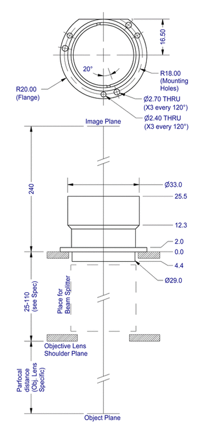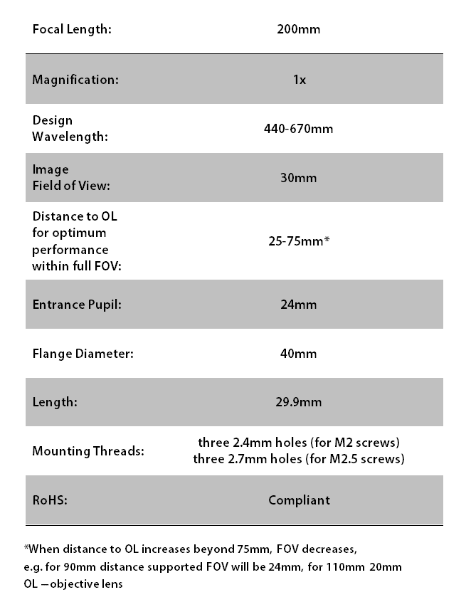 IN2-1XL is high performance 1x (f=200mm) imaging lens for infinity corrected microscopes, featuring among others: